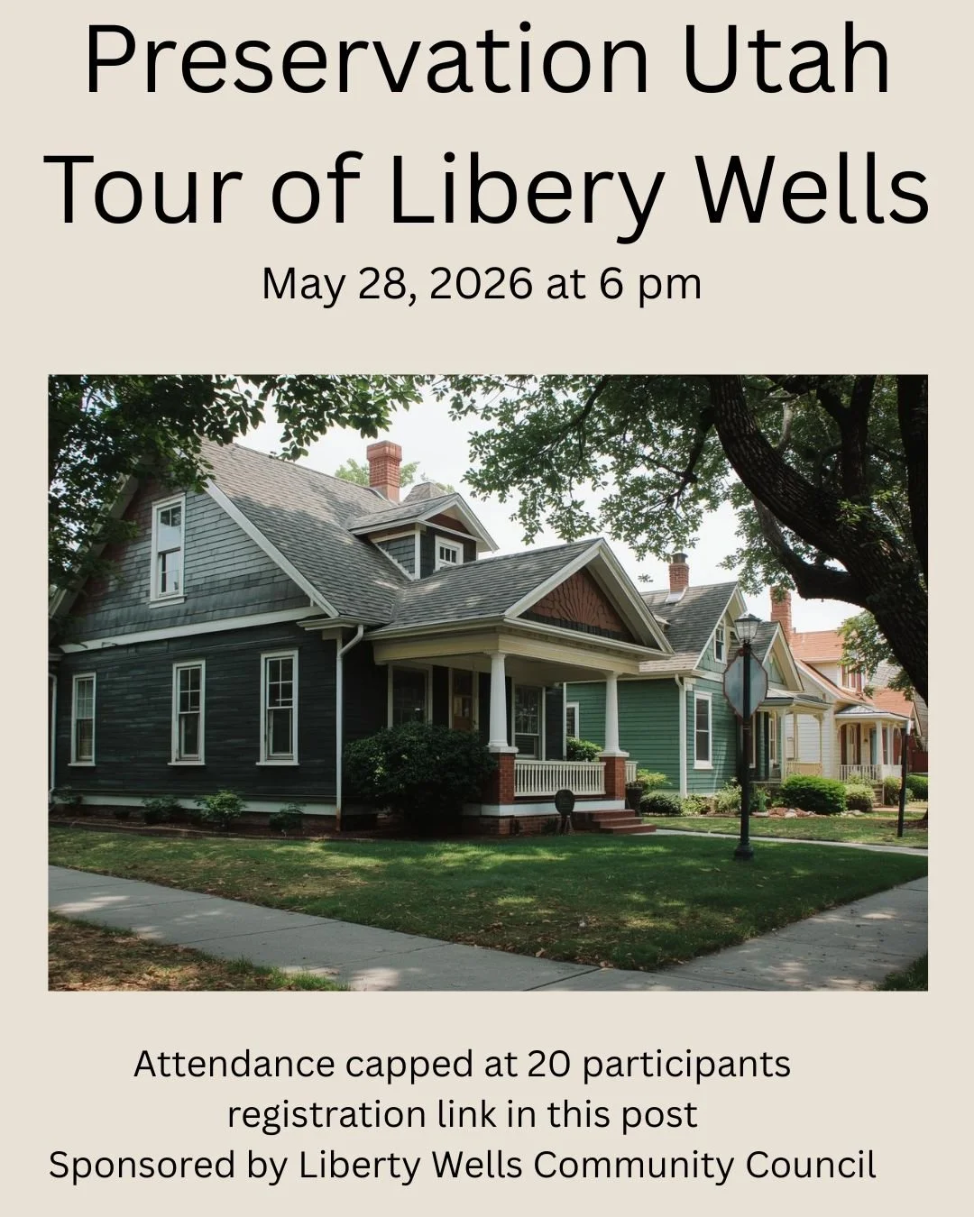 Join Preservation Utah for a special private walking tour created exclusively for the Liberty Wells community. This one-hour experience offers neighbors a deeper look at the history, architecture, and evolution of the place you call home.